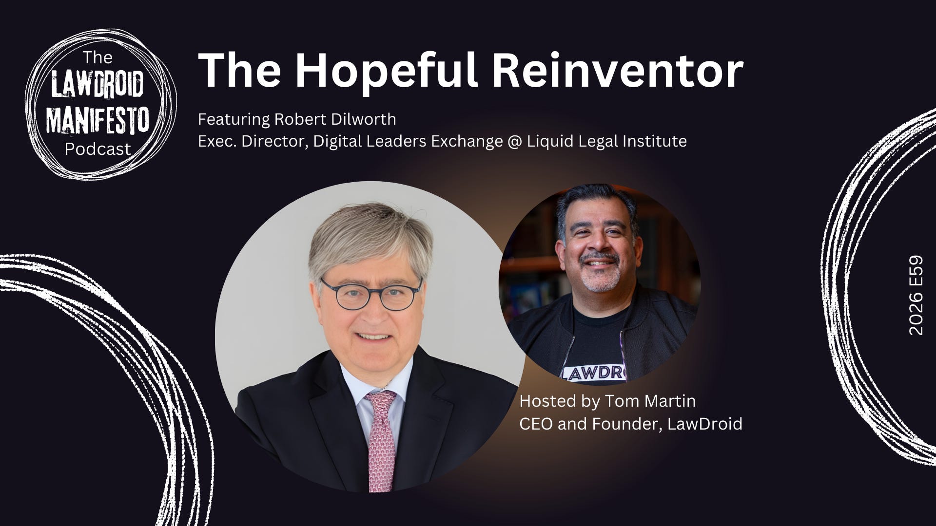 Robert Dilworth spent 35 years as a corporate lawyer, including 27 years at Bank of America as Managing Director and Associate General Counsel. Rather than retire quietly, he made a deliberate pivot, relocating to Hamburg, Germany, and stepping into a new chapter as Executive Director of the Digital Leaders Exchange at the Liquid Legal Institute, and as an Honorary Fellow at the Cambridge Judge Business School working at the intersection of AI and financial services regulation. Throughout this conversation, Robert reflects on what it means to reinvent yourself with intention, the role that optionality plays in shaping a rich legal career, and why the legal innovation community—filled with hopeful, selfless, and idealistic people—has given him more energy than he ever expected.